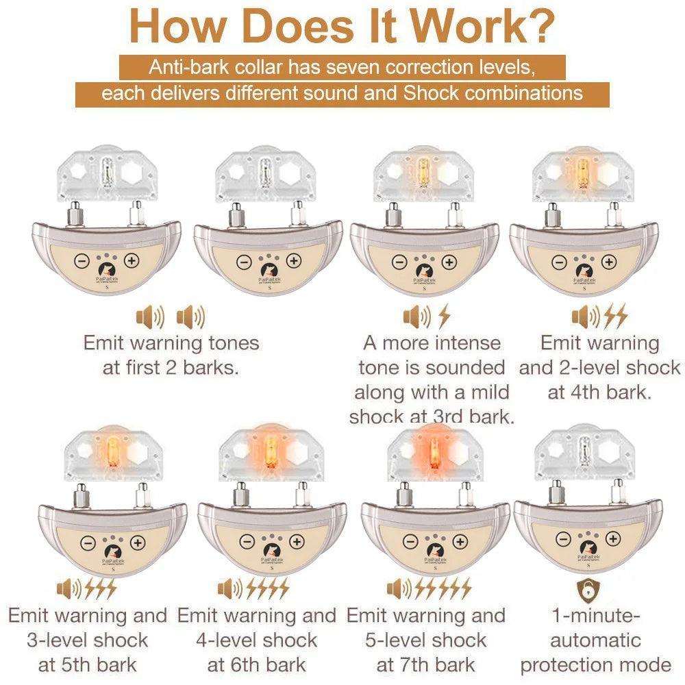 • Effective Training: Utilizes warning sounds and shock functions to efficiently correct barking behavior.