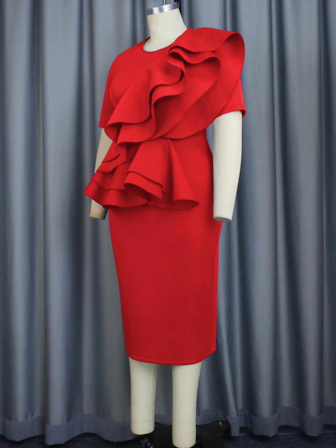 The stunning red color of this dress exudes confidence and is perfect for making a memorable impression. Whether you're attending a wedding, a gala, or any festive occasion, this Elegant Red African Peplum Dress Stylish Celebration Attire is sure to turn heads and leave a lasting impression.