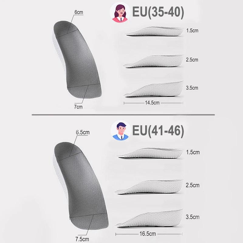 Elevate your daily experience with expertly crafted insoles featuring seven lifting points for perfect support and noticeable height advantage. The innovative shock-absorbent design ensures a soft and cushioned feel with every step. Whether you're working, on a romantic date, or enjoying a leisurely outing, these insoles are your ideal companion, helping you rediscover the joy of walking tall.