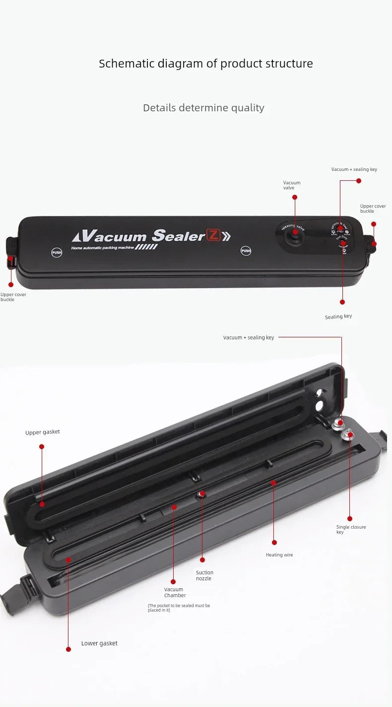 Experience ultimate food preservation with the Automatic Household Food Fresh-Keeping Sealing Machine. This device not only enhances your kitchen efficiency but also provides: