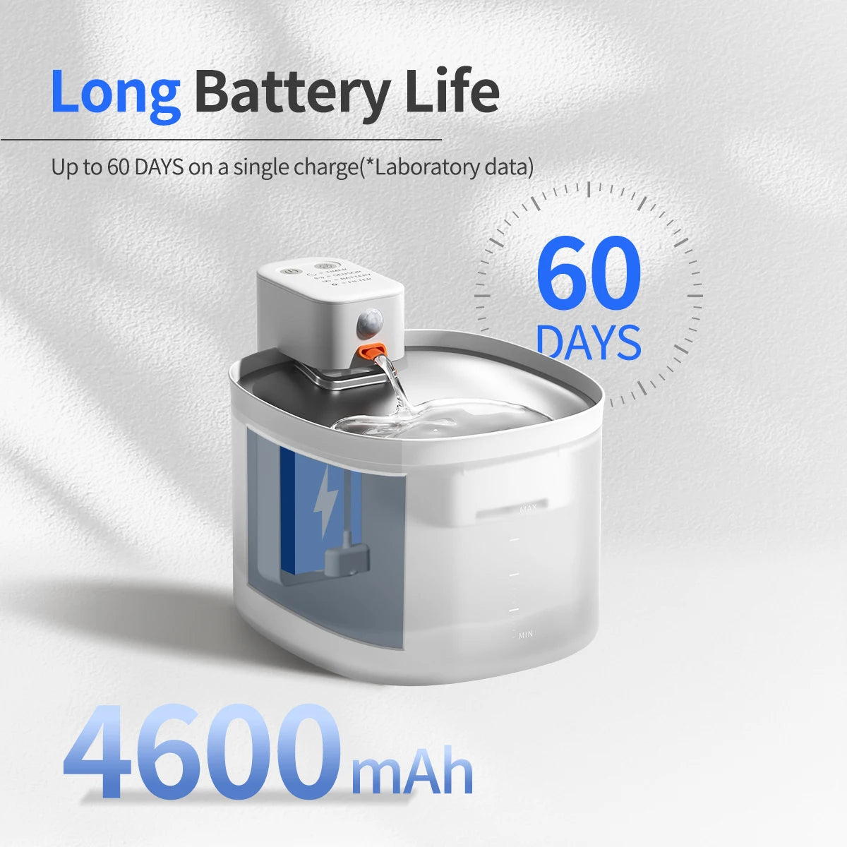 • Smart Sensor Activation: The fountain automatically activates when your pet approaches, ensuring a constant flow of fresh water without manual interference.