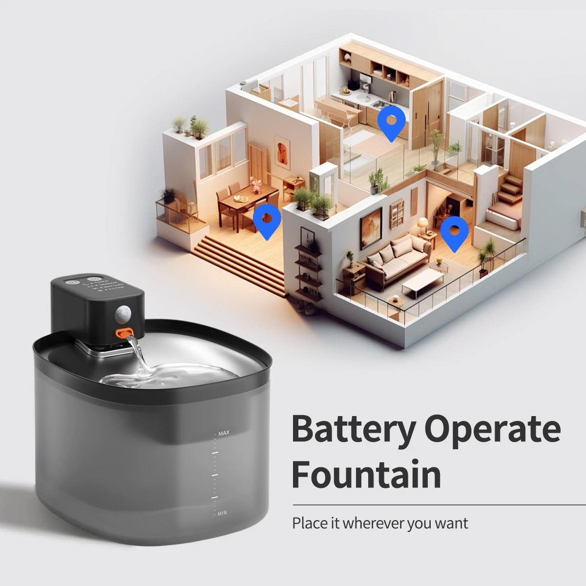 • Battery Operated Convenience: Enjoy the freedom of placing the fountain anywhere in your home without worrying about power outlets. Its cordless design allows for versatile placement.