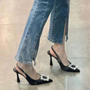 Rhinestone Square Buckle High Heels Elegant Women's Footwear