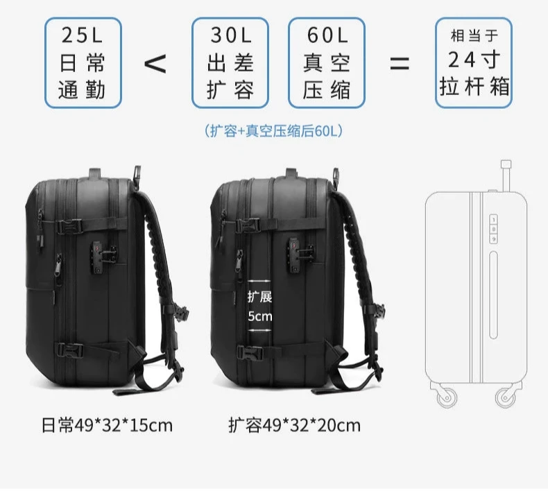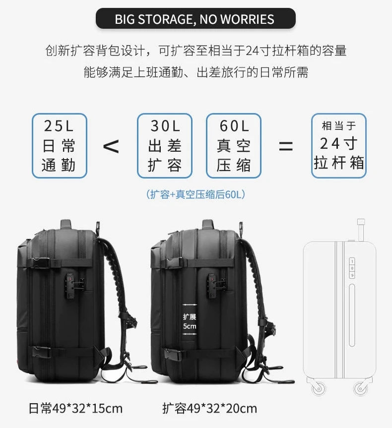 Backpack Men Multifunctional Travel Bag Vacuum Waterproof