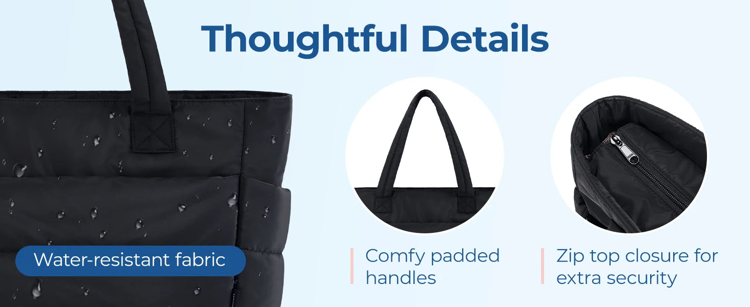 Introducing the BAGSMART The Bubble Tote Bag Cotton Padded Quilted Purse, the ultimate blend of style and practicality for every modern woman. Crafted from soft, durable milk cotton, this quilted puffer tote is your perfect companion for daily adventures. Weighing only 0.99 pounds, you can effortlessly carry everything you need without the bulk.