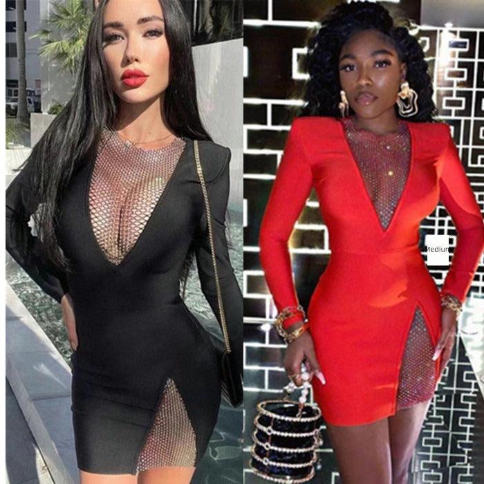 Don't wait to transform your evening wear collection. Order now and step out in style with our Diamond Evening Dress: Elegant Bandage Nightwear Dress!
