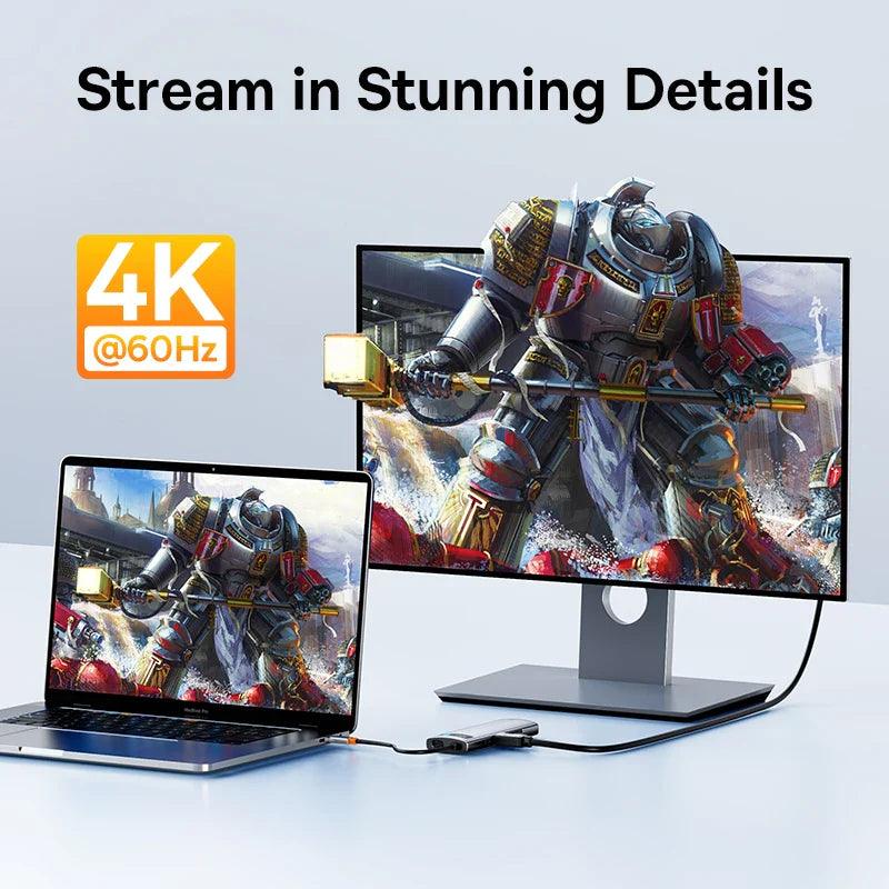• 4K@60Hz Output: Enjoy crystal-clear visuals for presentations, streaming, and gaming.