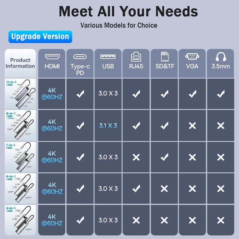 • 8-in-1 Connectivity: Connect multiple devices simultaneously, including HDMI, Ethernet, and USB-A ports.