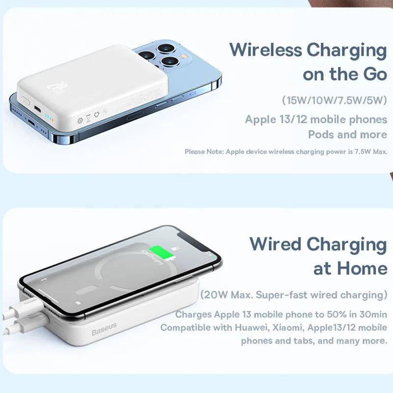 Introducing the Baseus 10000mAh Mini Magnetic Wireless Fast Charger, your ultimate charging companion designed specifically for the iPhone 15, 14, 13, and Pro Max. This compact yet powerful power bank merges modern technology with seamless usability, ensuring you stay charged and connected, no matter where life takes you.
