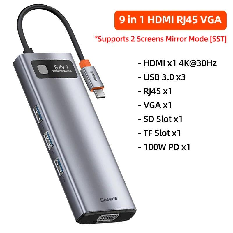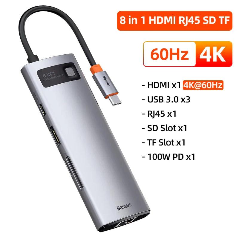 Transform your tech experience with the Baseus USB Type C HUB USB C to HDMI Compatible RJ45 SD Reader. This multifunctional hub is designed to elevate your productivity, whether you're a professional on the go or a tech enthusiast at home.