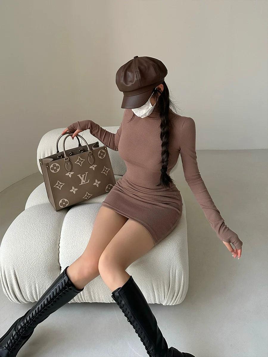 This dress is more than just clothing; it’s a statement of sophistication. With its striking design and solid color, it keeps you on-trend and versatile for various autumn occasions.