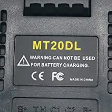 Important Notes: Please note that the MT20DL adapter does not support charging 20V batteries with DeWalt chargers. Avoid leaving the 20V battery plugged into the adapter after use, as it is not intended for charging power tool batteries.