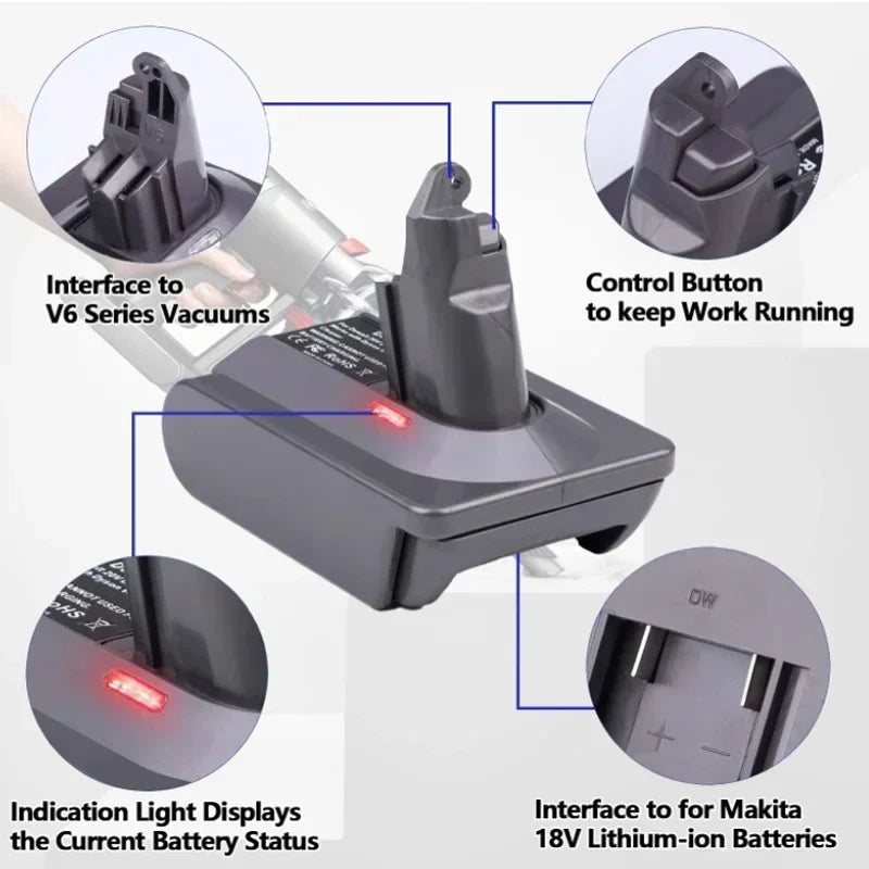 Say goodbye to the hassle of multiple battery systems and embrace the efficiency of a unified power solution. Order now and elevate your cleaning routine today with our 18V Li-ion Battery Adapter for Dysons V6/V7/V8 Compatible.