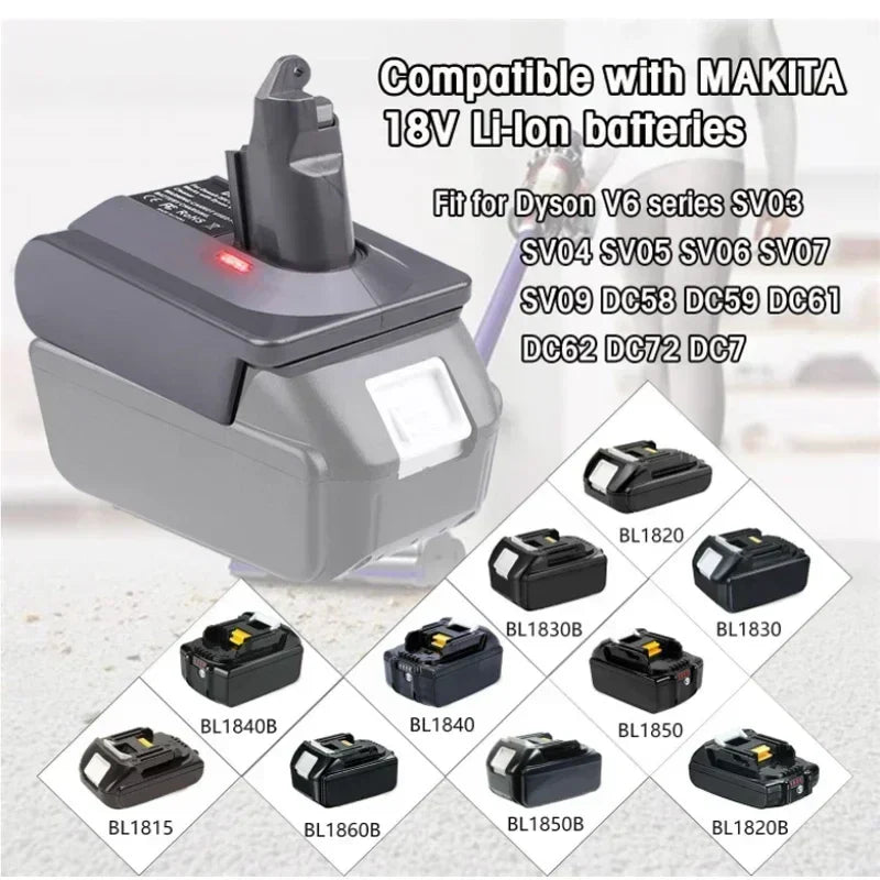 18V Li-ion Battery Adapter for Dyson V6/V7/V8 Compatible