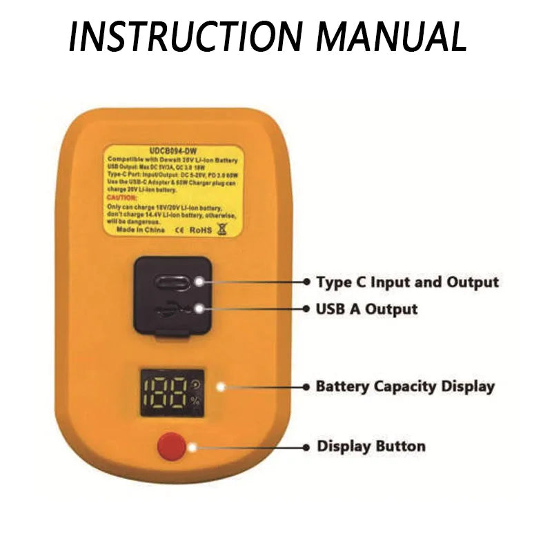 Power Up with the 18V Li-ion Battery USB Type-C Charger for Power Tools Use