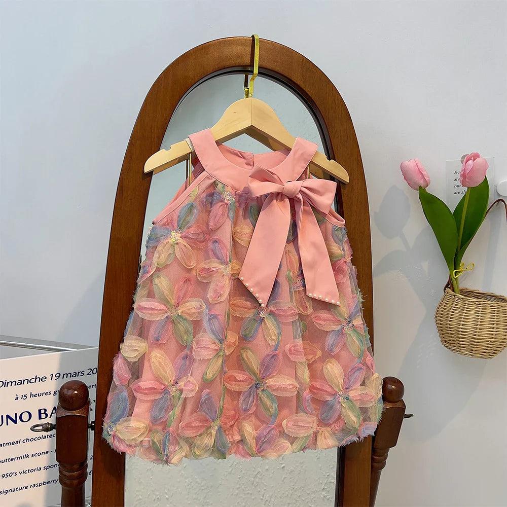 Explore more with our selection of Little Princesses, Cotton Polyester Blend, Trendy Crew Neck, A-line Silhouette, Sleeveless Summer, Charming Bow Detail, Fashion for Girls, Summer Essentials, Kids Fashion 2023, Summer Fashion.