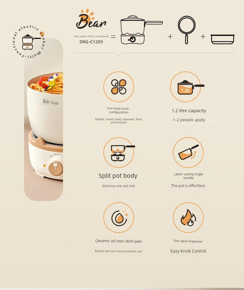 Bear Split Electric Caldron Pot For Students Multi-Functional Cooking