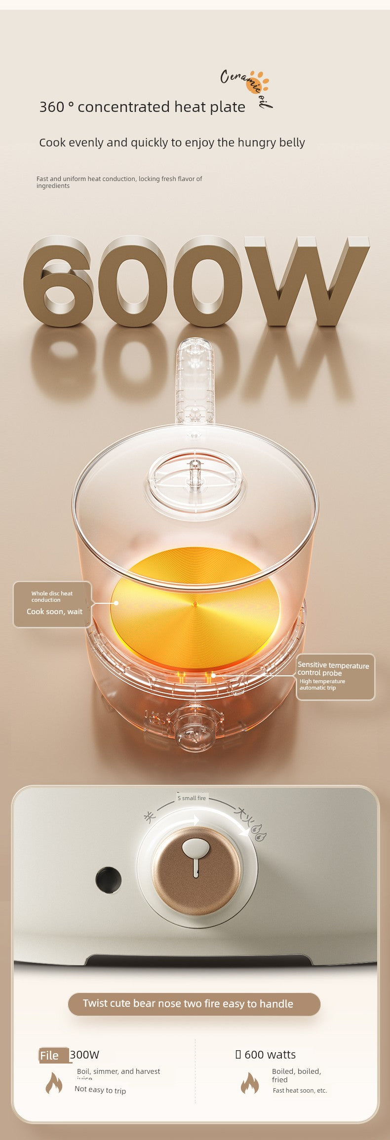 Introducing the Bear Split Electric Caldron Pot For Students Multi-Functional Cooking—your ultimate kitchen companion tailored specifically for students! This versatile cooking pot is designed to meet all your culinary needs while making cooking a breeze.