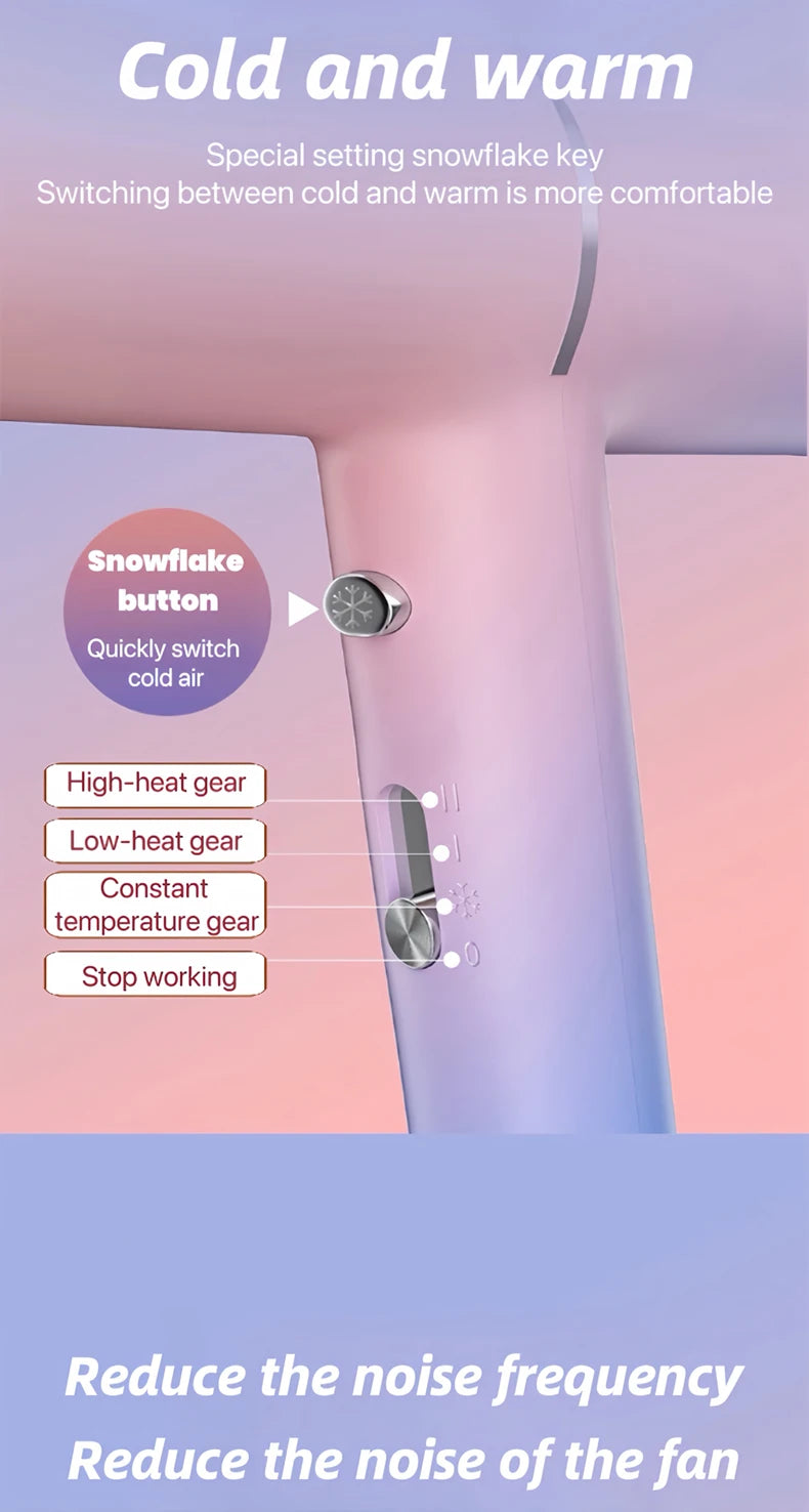 Transform your hair drying routine with the Beautiful Hair Dryer Gradient Color Low Noise Quick Drying. This innovative hair dryer is designed to elevate both your styling experience and hair health. Featuring advanced negative ion technology, it promotes shiny, manageable hair while reducing frizz and static.