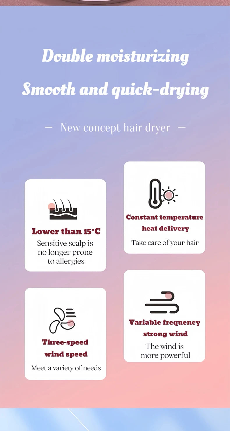 This professional Gradient Color Hair Dryer not only stands out visually but also delivers exceptional performance. Say goodbye to traditional hair dryers and embrace this modern accessory that offers: