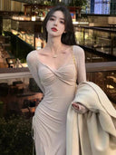 Goddess Vibes Beige Apricot Dress: Elegant Autumn Chic Choice