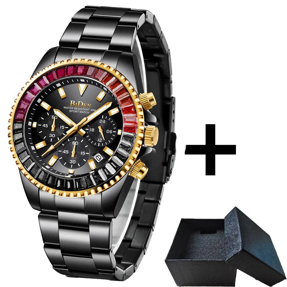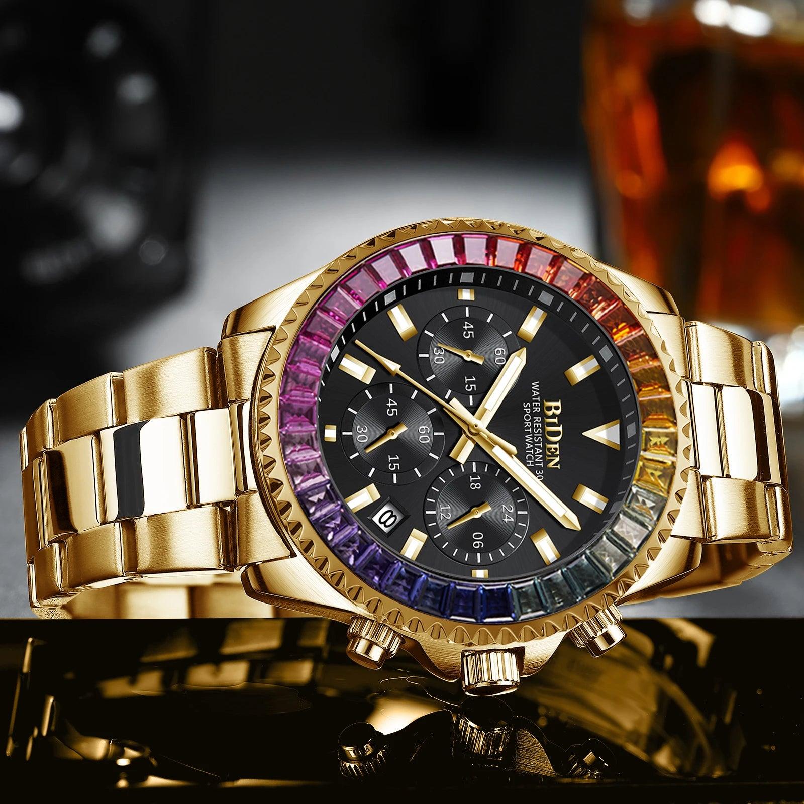 Whether you're heading to a business meeting or a luxury event, the stylish timepiece for men will elevate any outfit. Don't miss out on this exquisite accessory—order now and experience timeless elegance with the Rainbow Diamond Gold Watch Stylish Timepiece for Men!