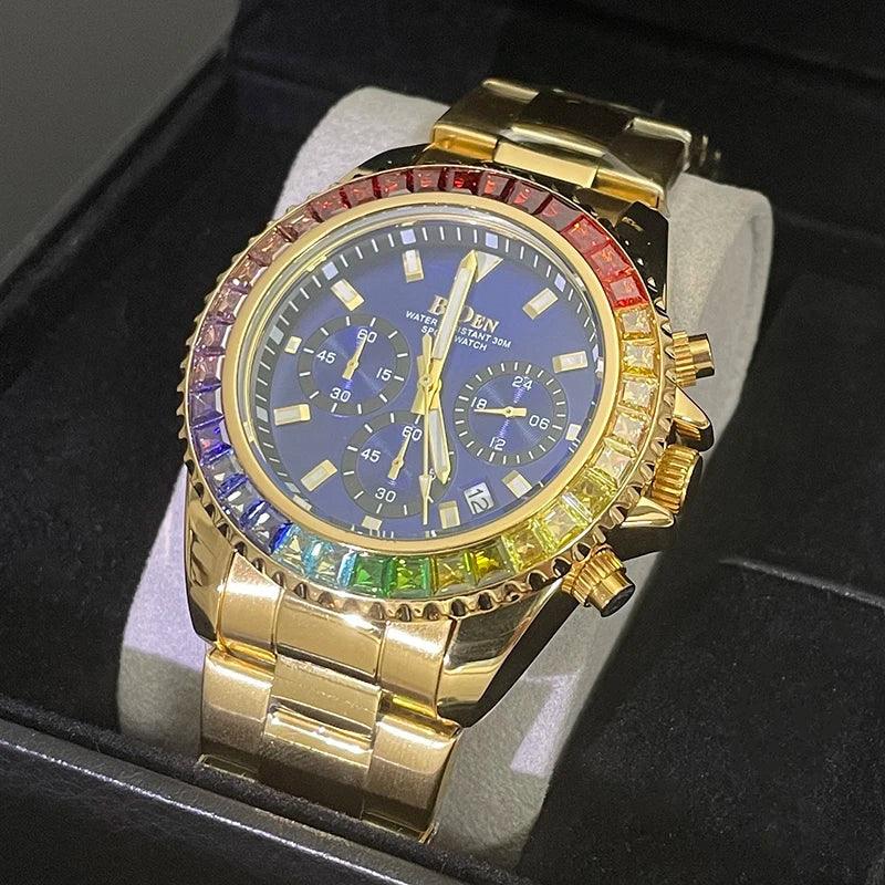 Step up your style game with the Rainbow Diamond Gold Watch Stylish Timepiece for Men. This luxury watch is not merely a tool for telling time; it is a statement of elegance and sophistication designed for the modern gentleman.