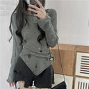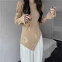 Elevate your style with our Black Ripped Hollow Long Sleeve Knit Women's Pullover Korean Style Fashion Statement. This trendy addition to your wardrobe is designed for the modern woman who values both comfort and fashion.