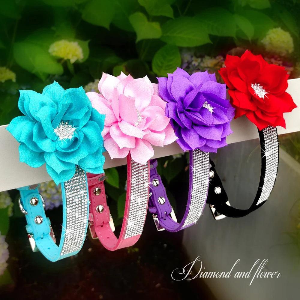 Luxury Rhinestone Flower Pet Collar - Shimmering Glam Style