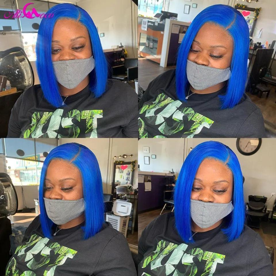 Elevate your style instantly with the Stunning Blue Bob Wig with Transparent Lace Front 13x4. This exquisite wig, made from premium Brazilian human hair, offers you a perfect mix of versatility and elegance. Whether dressing up for a special occasion or adding flair to your everyday look, this bob wig is designed to turn heads.