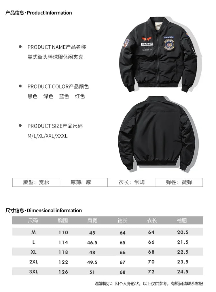 Introducing the Bomber Jacket Ma1 Air Force Pilot Men Thick Fleece Coat, the ultimate choice for the modern man who refuses to compromise on style or functionality. As the temperatures drop, this jacket is your go-to outerwear, ensuring you stay warm and fashionable during chilly days.
