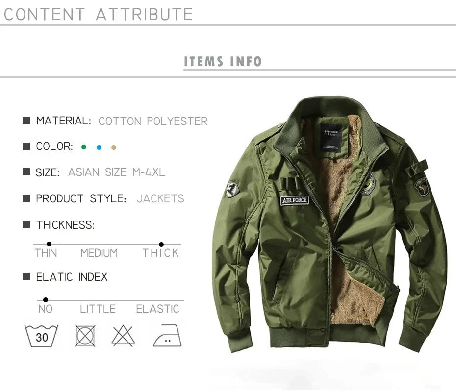Don't miss the chance to elevate your winter wardrobe with the Bomber Jacket Ma1 Air Force Pilot Men Thick Fleece Coat. Gear up for the cold seasons with this stylish and functional piece. Order now and experience the perfect blend of comfort and style!