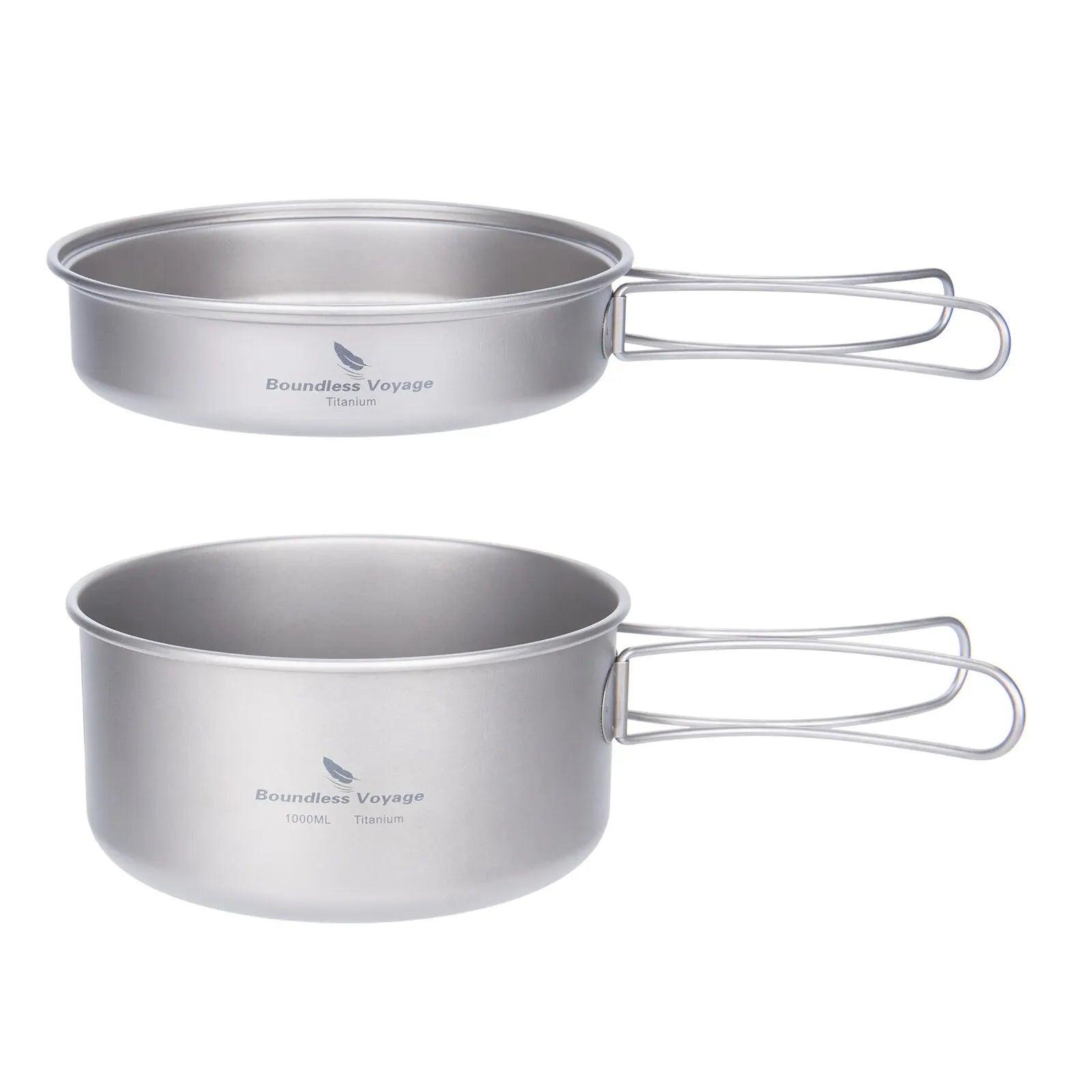Camping Cookware Set Lightweight Titanium with Folding Handles