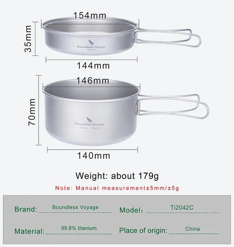Don't miss out on the opportunity to embrace the wilderness with confidence. Order now and make unforgettable memories with our Lightweight Titanium Camping Cookware Set with Folding Handles!