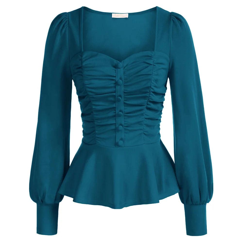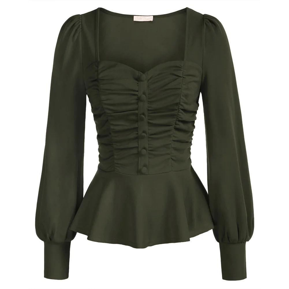 Introducing the Elegant Puffed Sleeve Peplum Top Chic Women's Blouse Style, your new fashion staple that effortlessly blends timeless elegance with modern flair. This versatile blouse is designed for the dynamic woman who values both style and comfort, making it suitable for a variety of occasions.