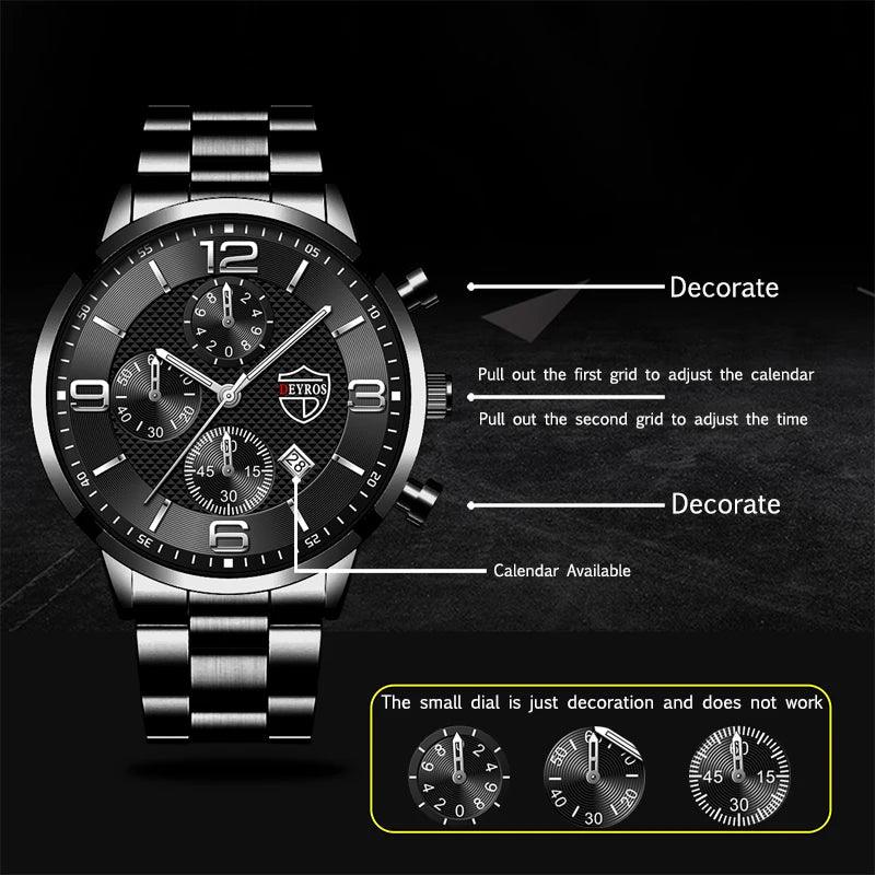 The Luxury Men's Stainless Steel Business Watch is more than just an accessory; it's a statement piece that enhances your everyday look. Whether you're in the boardroom or enjoying a night out, this watch adds a touch of timeless elegance to any ensemble.