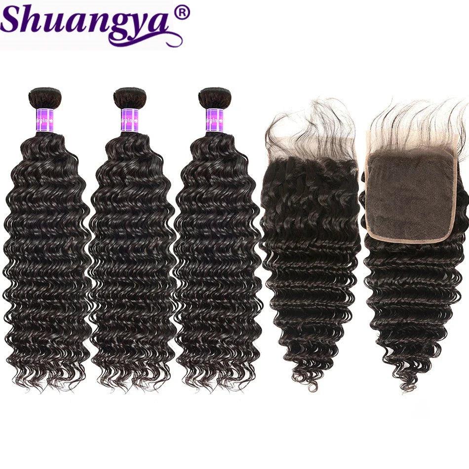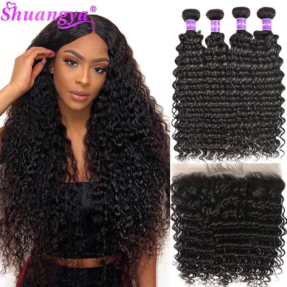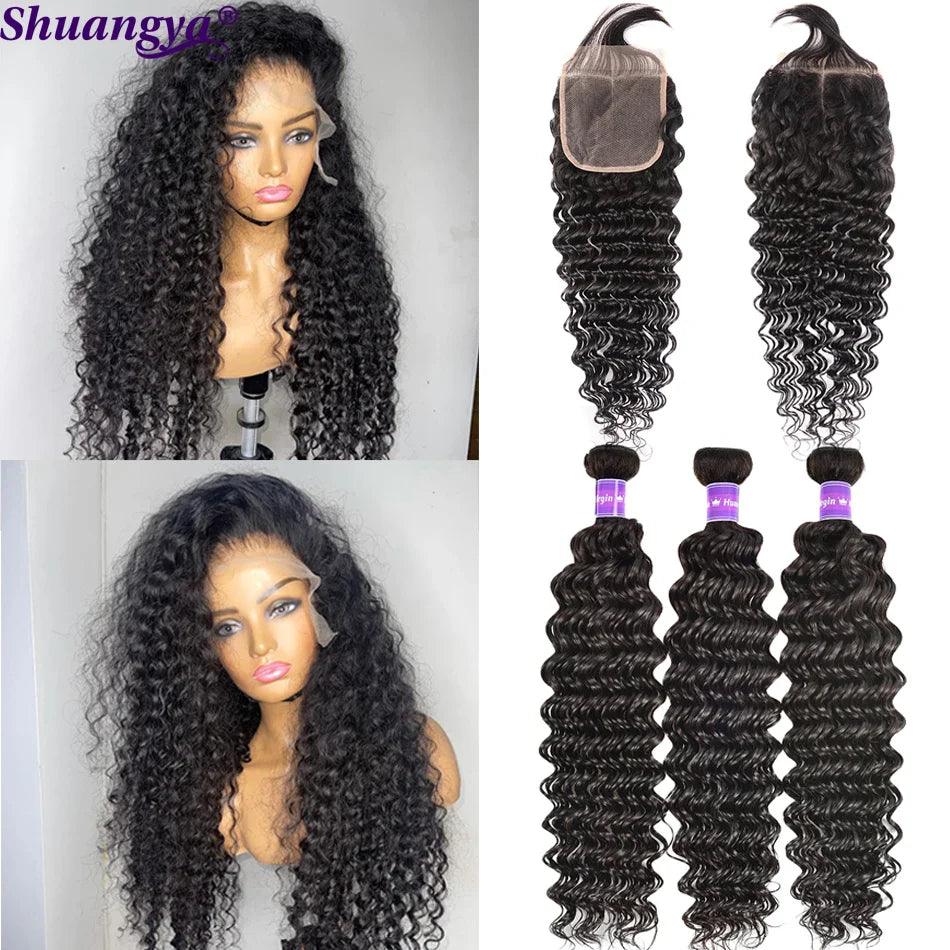 Luxury Brazilian Deep Wave Remy Hair Bundle Set with Frontal