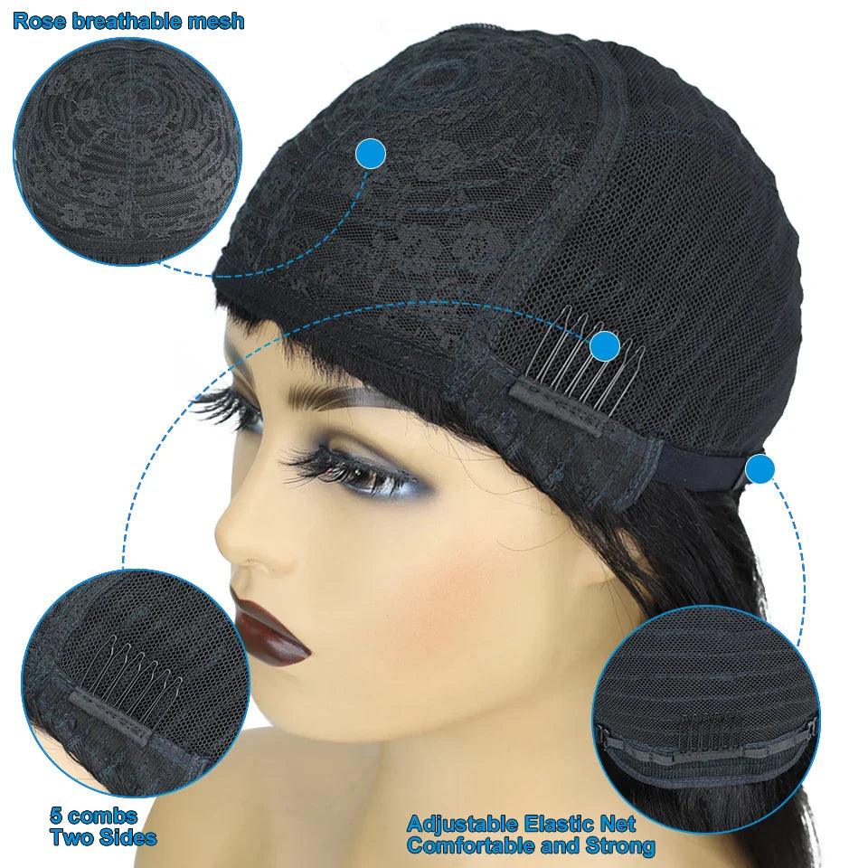 Your perfect hair solution awaits. Embrace the beauty of versatility and convenience with our Brazilian Human Hair Bob Wig with Bangs Premium Quality. Order now and transform your look!