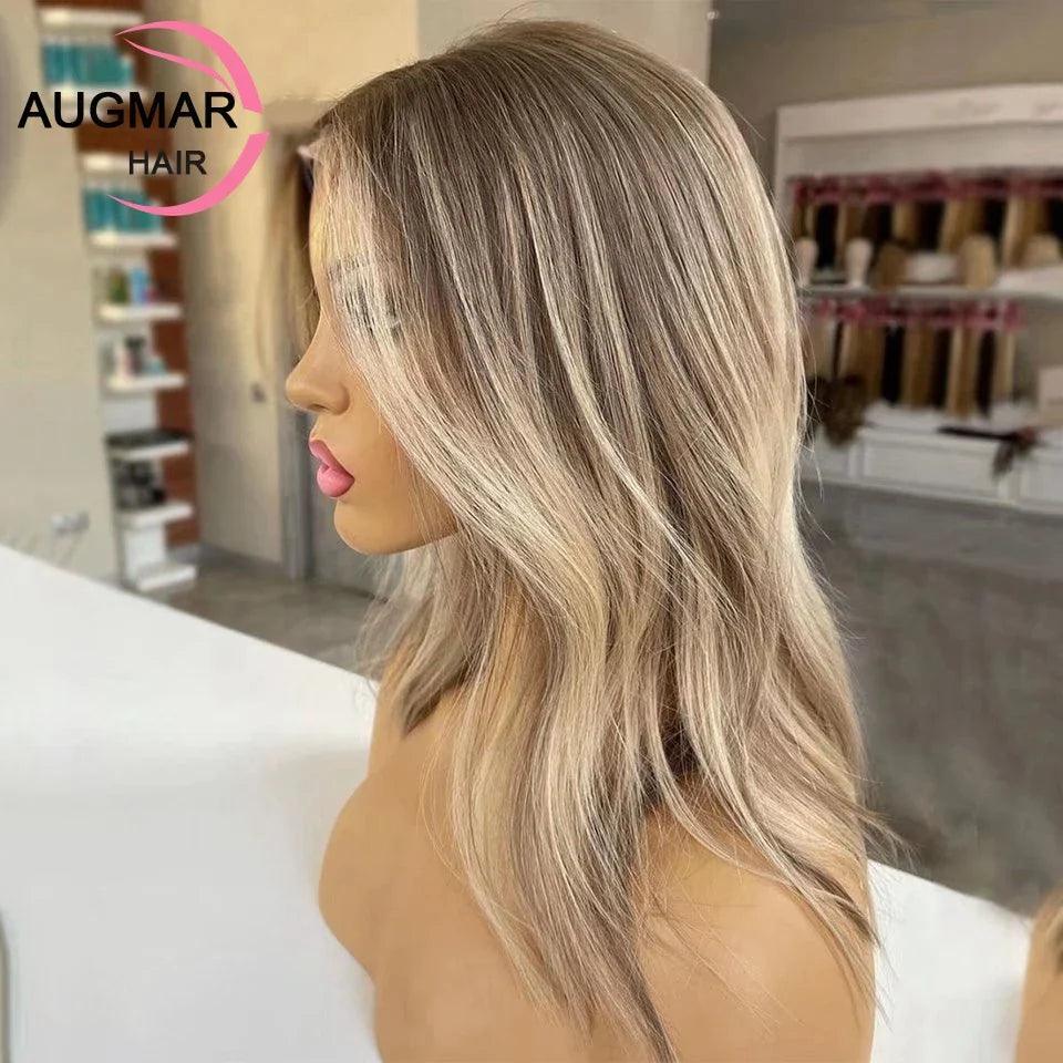 Transform your look effortlessly with the Brown Highlight 360 Lace Frontal Wig Short Wavy Ash Blonde. Designed for women who desire both style and confidence, this exquisite wig is crafted from 100% premium human hair, featuring beautiful ash blonde highlights that add depth to your style.