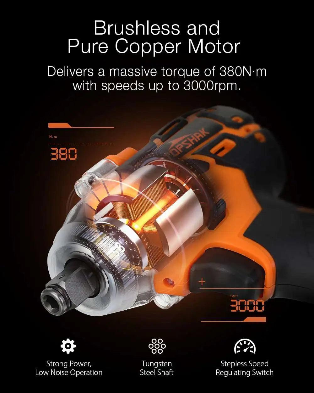 This 588N.M Brushless Electric Impact Wrench 1/2 Inch Cordless is equipped with: