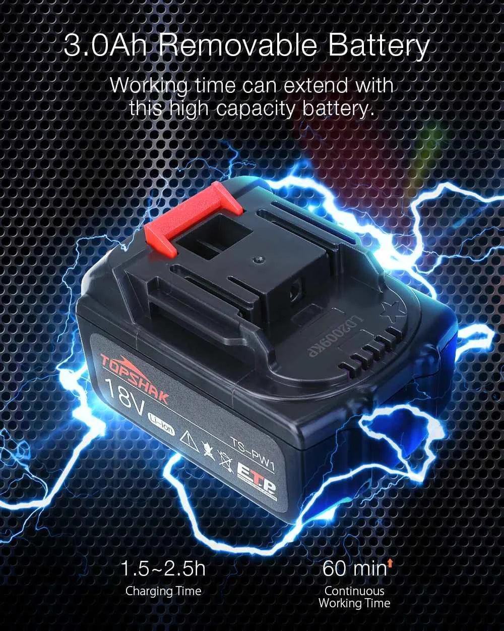 • High-Capacity 3.0 Ah Removable Battery: Offers extended working time and quick charging capabilities for uninterrupted use.