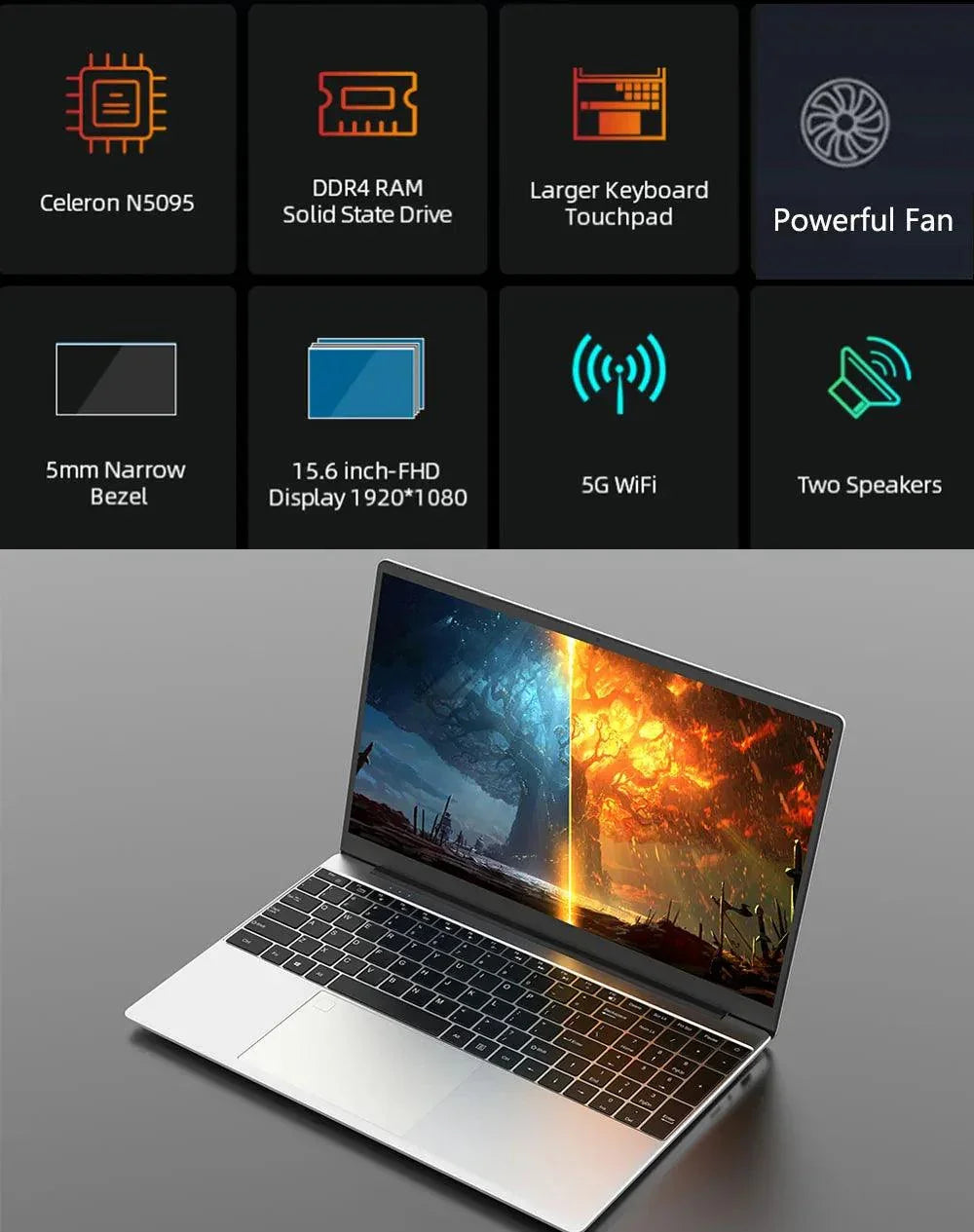 Byone Gaming Laptop Intel Celeron N5095 High Quality Display