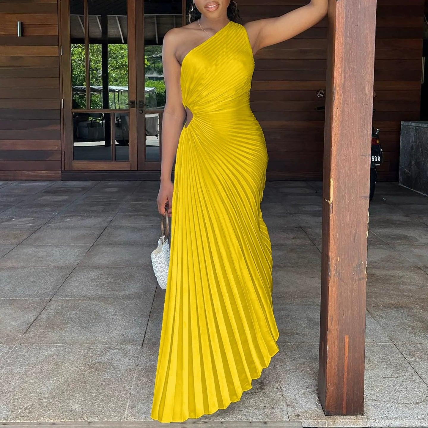 Glossy One-Shoulder African Dress: Stylish Summer Chic