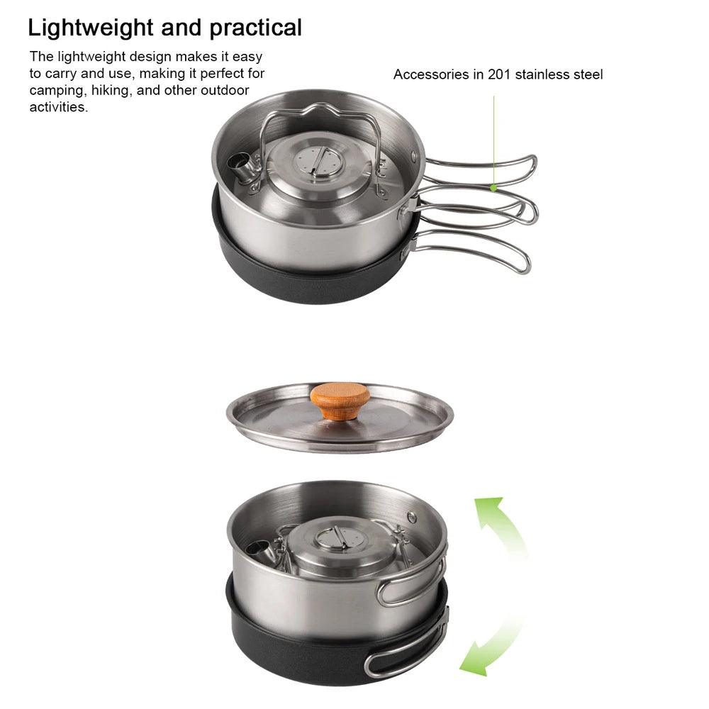 • Lightweight and Portable: Effortlessly transportable, this cookware set is ideal for all your adventures.