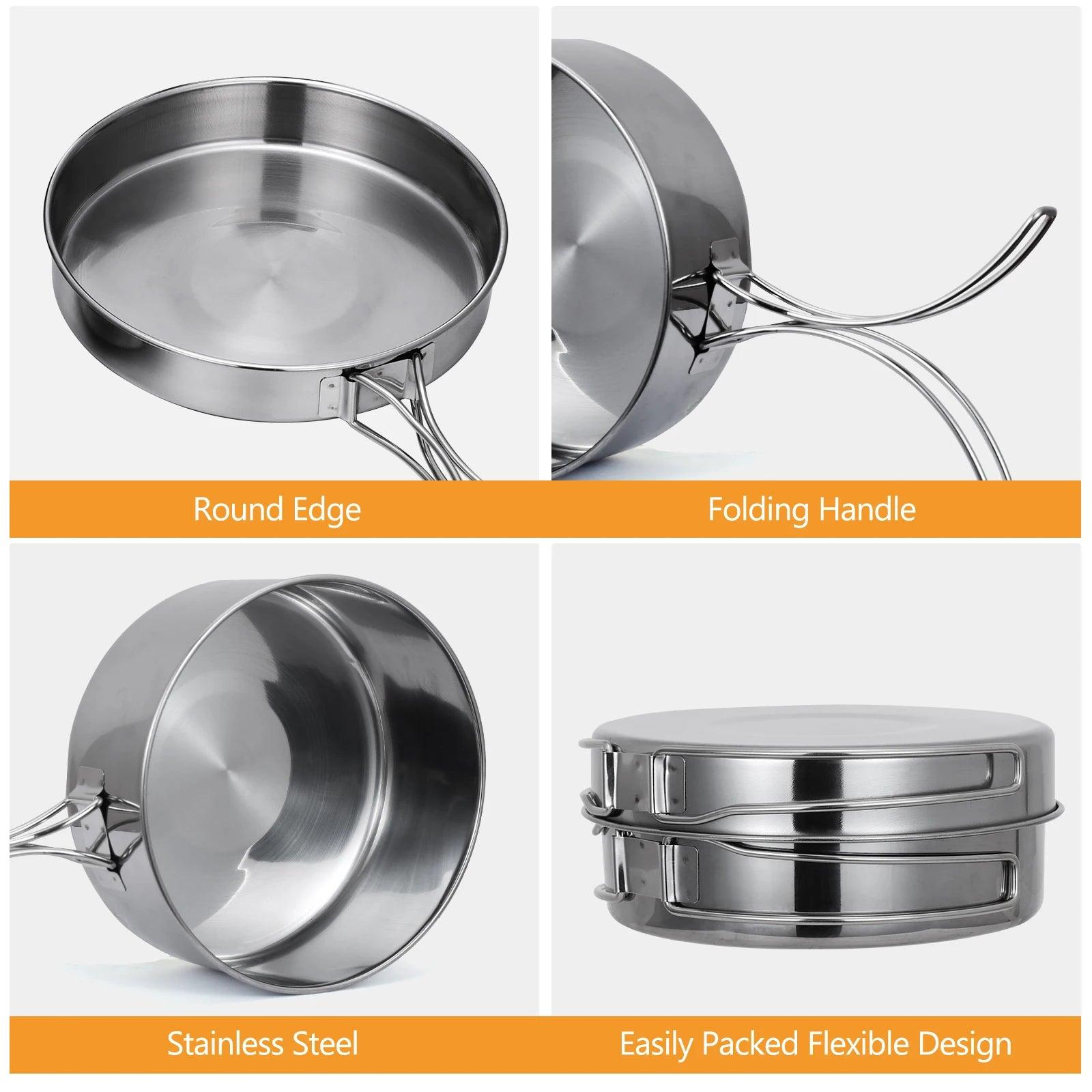 Portable Stainless Steel Camping Cookware Set for Hiking