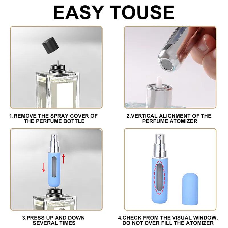 • Versatile Use: Perfect for perfumes, cosmetics, essential oils, and other beauty products, this refillable bottle is a must-have for your travel kit.