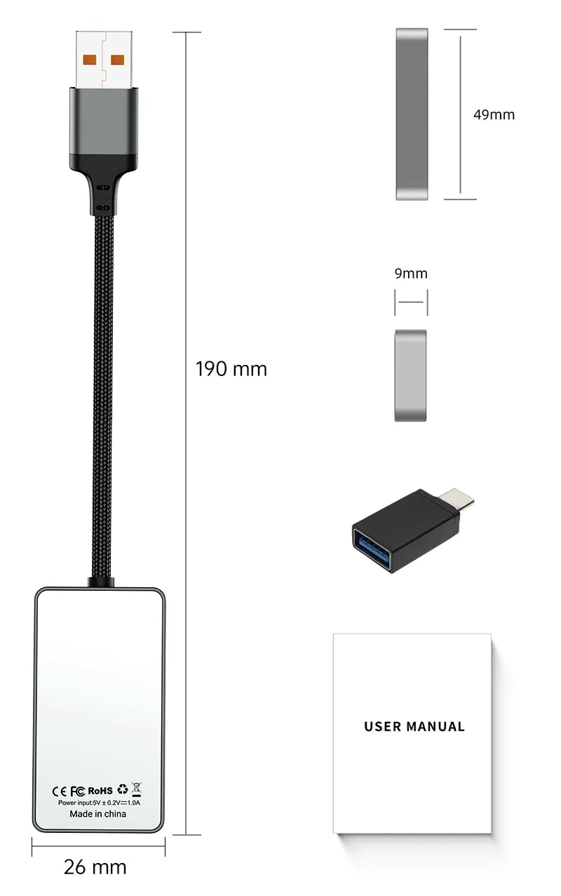 • Compact Design: Smaller than conventional CarPlay AI boxes, it’s designed for easy portability and storage.