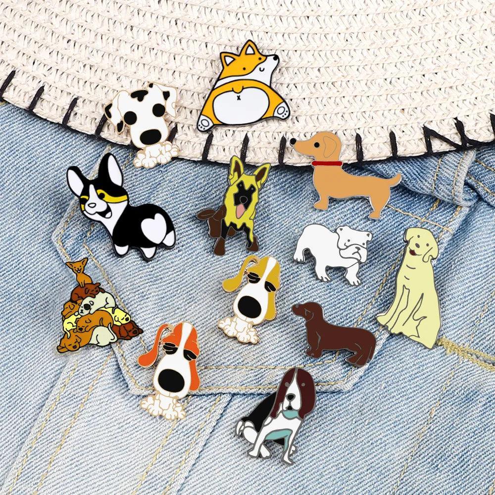 Cartoon Dogs Enamel Brooch Cute Animals Badge Jewelry Gift