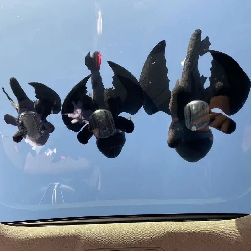 Maintenance is simple: surface clean with a damp cloth or mild soap, air dry, and avoid machine washing to preserve shape. Its durable materials help Cartoon Plush Black Flying Dragon Car Toy Ornaments retain color and softness over time.