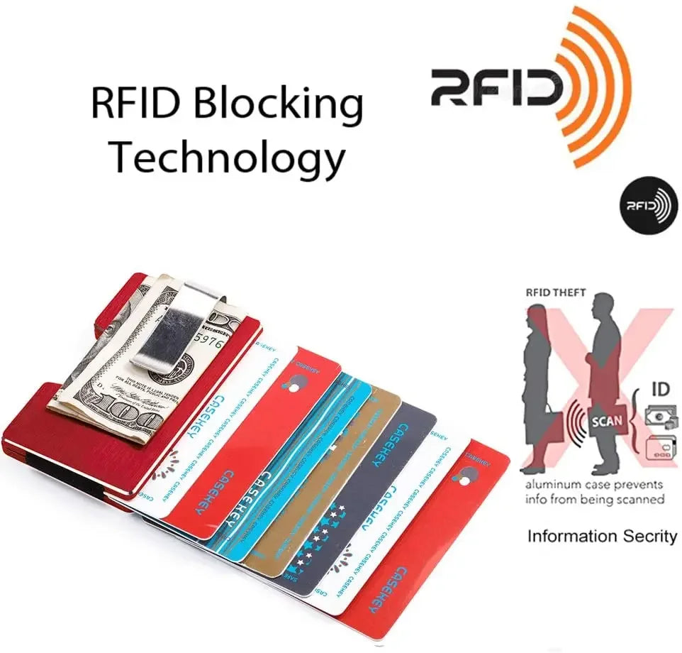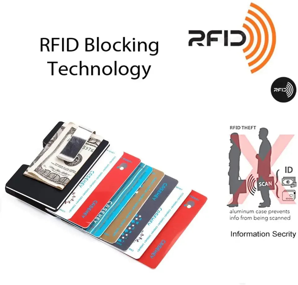 Casekey Mens Slim Wallet With Money Clip RFID Card Holder Casekey Mens Slim Wallet With Money Clip RFID Card Holder delivers a compact, durable aluminum body with RFID blocking, room for up to 25 cards and 15 bills, and an integrated money clip for quick cash access. Ideal for work, travel, and everyday carry.
